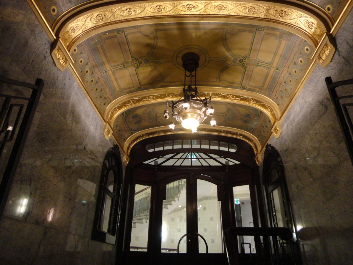 Blick an die Decke des Tanzraumes im EG im Nochtspeicher